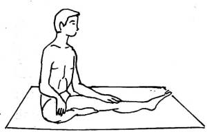 a) Ngồi, chân thẳng, vai xuôi tự nhiên, ngực kéo lên cao. Hai chân duỗi thẳng sát nhau, bàn chân duỗi. Dùng tay kéo chân phải, đặt gan bàn chân sát vào đùi trái, gót chân càng gần hội âm càng tốt, đầu gối đặt sát đất. Để yên như thế một lát, thở đều, hai tay đặt lên hai đầu gối (A22a). Thở ra và cúi xuống chân duỗi, cố với tay đến bàn chân. Ngẩng lên đồng thời thở vào. Làm 3 lần như thế. Trở về như lúc đầu, chân duỗi thẳng sát nhau. Tiếp tục bằng chân kia.